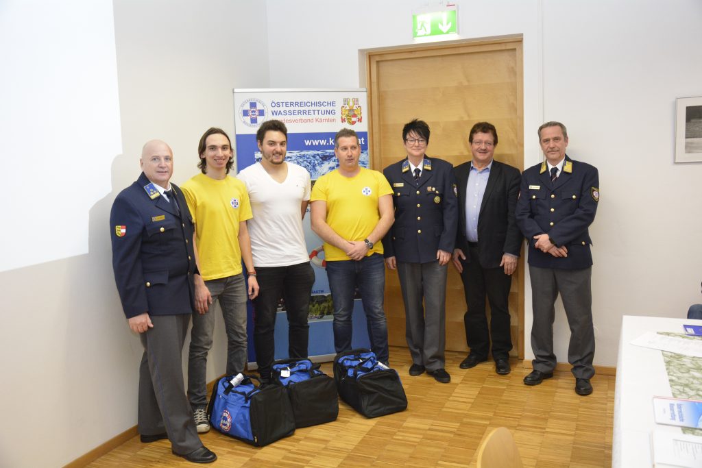 Unter den zahlreichen anwesenden Mitgliedern der Österreichischen Wasserrettung befanden sich die Ehrengäste Bgm. Thomas Krainz, ÖWR-Landesleiter-Stv. Helmut Buchbauer, Landesvorstandsmitglied Angelika Kirchlehner, Johannes Primus von der ÖWR-Einsatzstelle St. Andrä, Bezirksinspektor Thomas Geith von der Polizei St. Kanzian und Oberbrandmeister Florian Kordesch von der FF Peratschitzen.