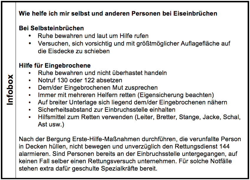 Sollten Sie einmal in die Situation kommen, als Ersthelfer bei einem Eiseinbruch vor Ort zu sein