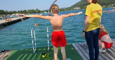 Die ÖWR-Rettungstaucher unserer Einsatzstelle begaben sich am Campingbad Nord vom Steg aus in den See. Bei den Tauchgängen übten sie die verschiedenen Aufgabenbereiche (Signalmann, Leinentaucher, Taucher und Sicherheitstaucher).