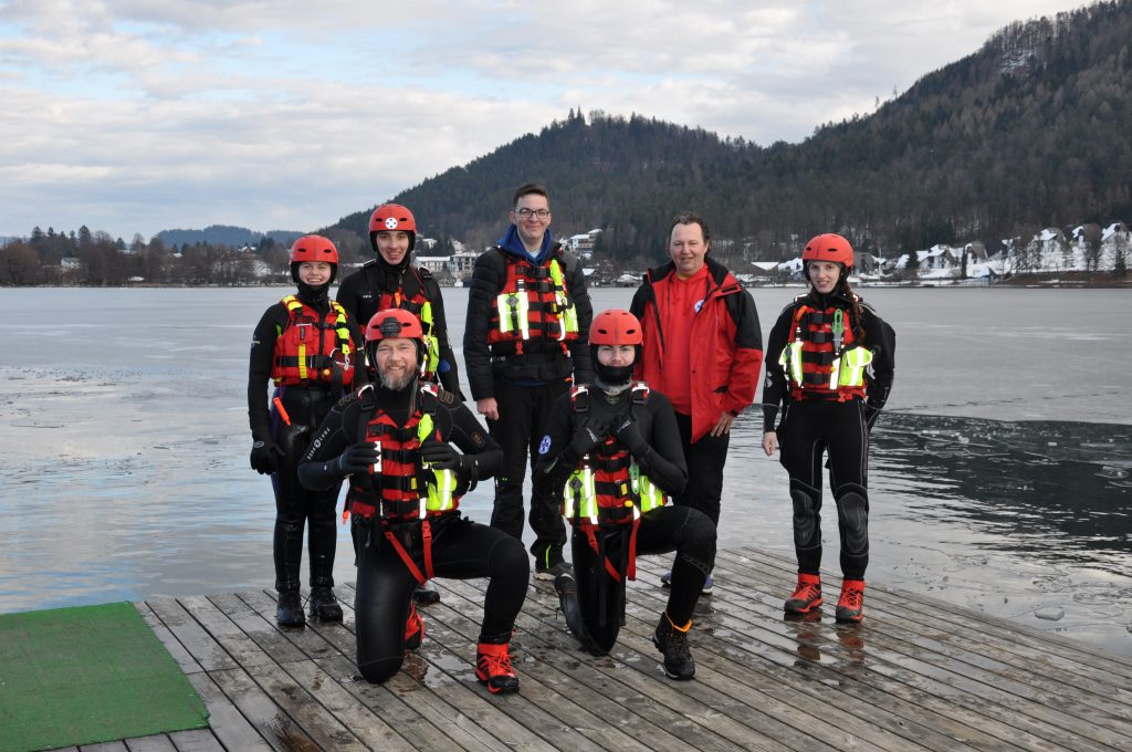 Nicht nur Einsatzkräfte, sondern auch unsere Rettungsschwimmer sollen mit der Materie des Eisrettens vertraut und geschult sein. Der teilweise zugefrorene Klopeiner See bietet momentan die idealen Bedingungen zum Durchführen und Üben solcher Einsätze.